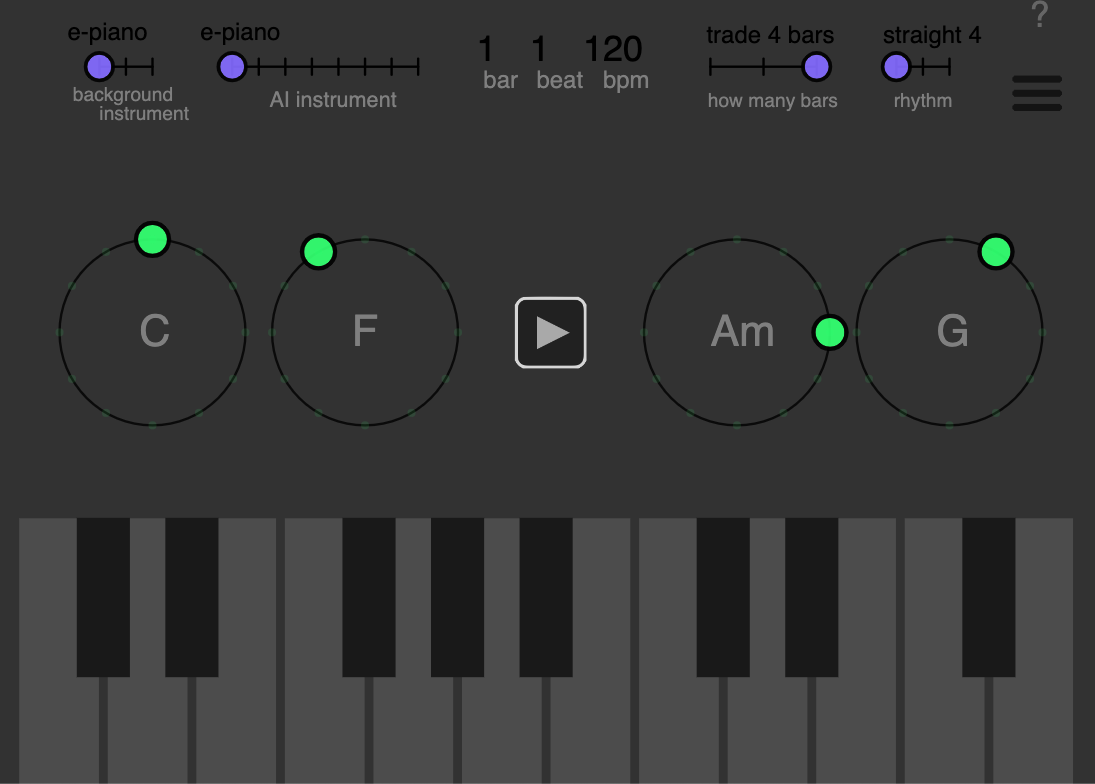 An interactive AI music generation tool. The front-end of the application is written in CindyJS, the back-end is in pure JavaScript and the Machine Learning model is deployed with TensorflowJS. I trained the model (LSTM-based) to predict monophonic melodies relative to a harmonic context. Check it out on GitHub or read my master's thesis.
